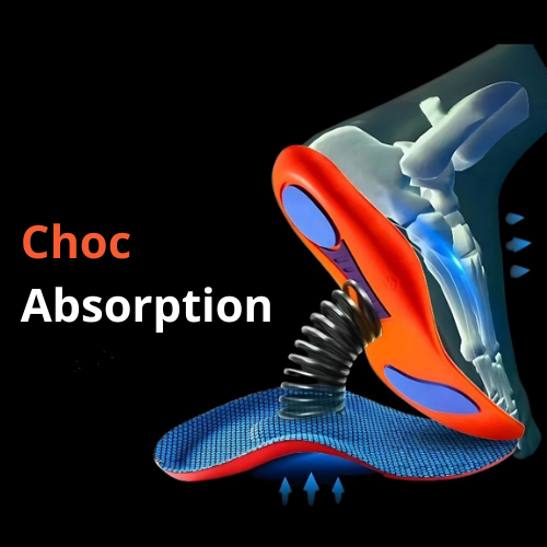Absorbe les chocs pour réduire la pression sur les pieds, les genoux et le dos.